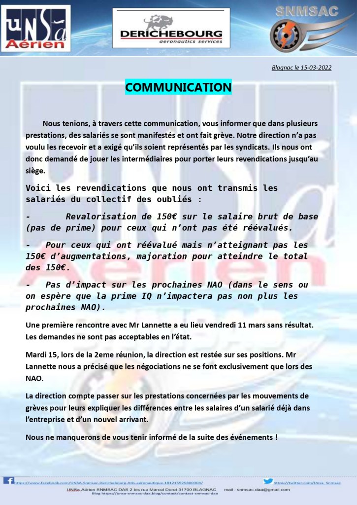 N’hésitez pas à nous contacter si vous souhaitez avoir plus d’informations sur ces mouvements de mécontentements dans notre entreprise.