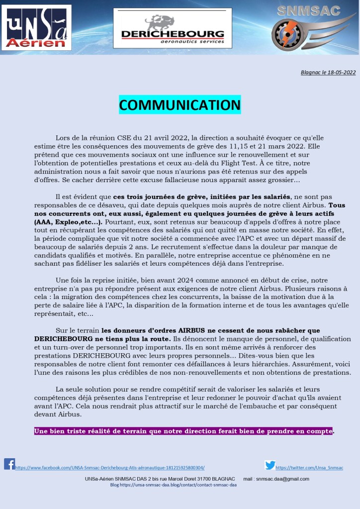 notre dernière communication pour répondre à notre direction qui pense que les mouvements de grèves sont la cause de la méfiance croissante de notre client envers nous est en ligne.