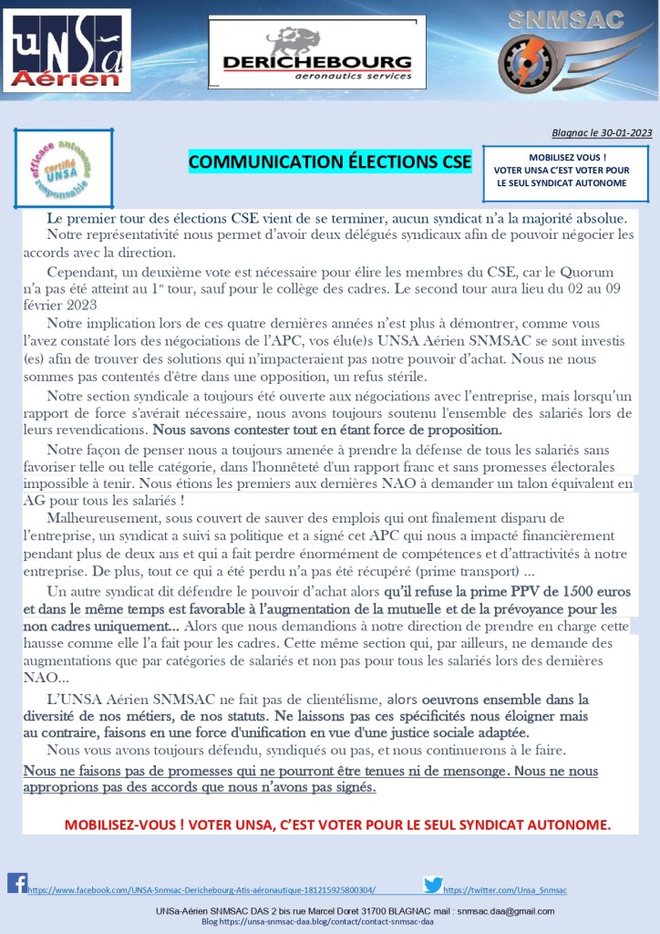 nos derniers tracts concernants le second tour des éléctions professionnelles et la dernière réunion CSE sont en ligne dans la rubrique TRACT 2023 ou en cliquant sur les liens ci-dessous: