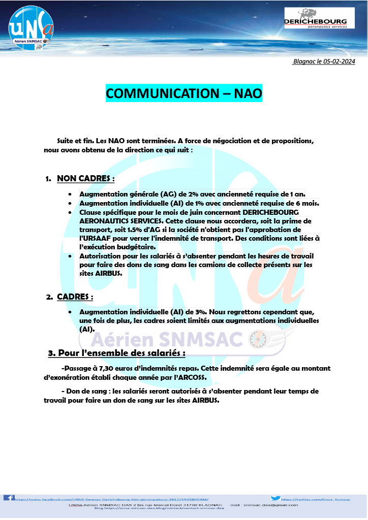 le dernier tract NAO du 05/02/2024 est en ligne, avec un peu de retard suite à des soucis technique, dans la rubrique TRACT 2024 ou en cliquant sur le lien ci-dessous: