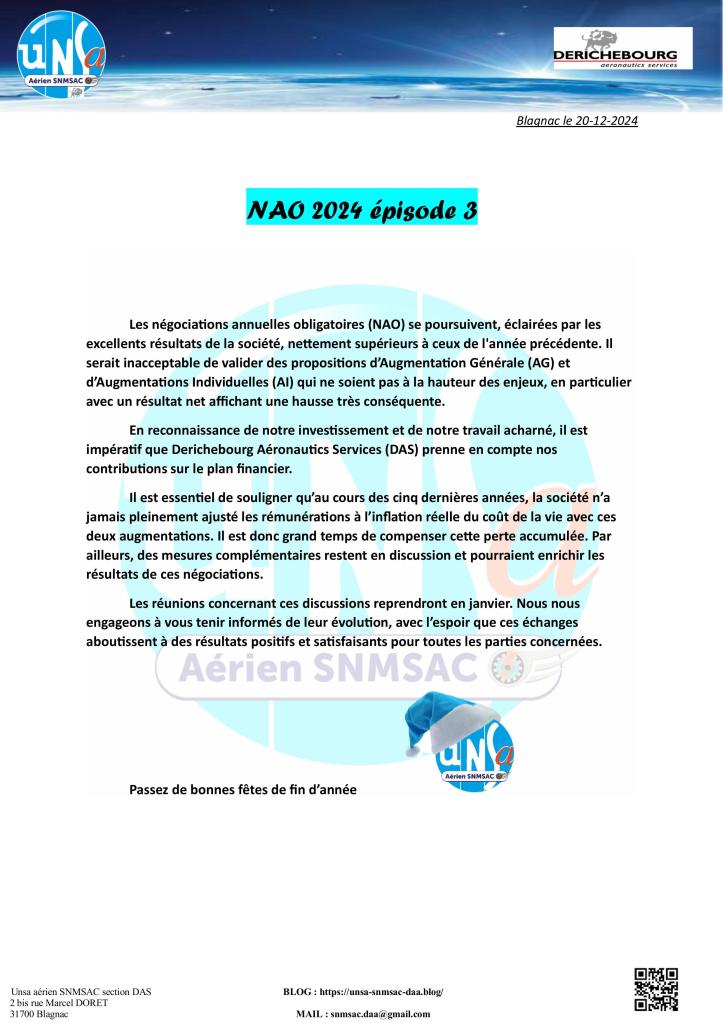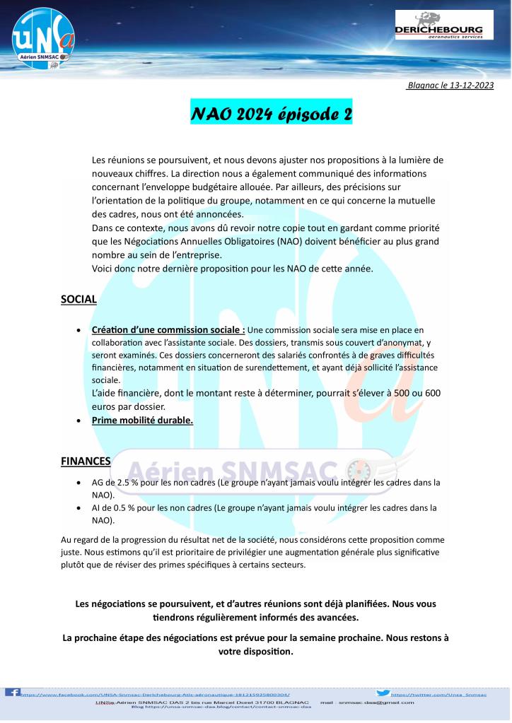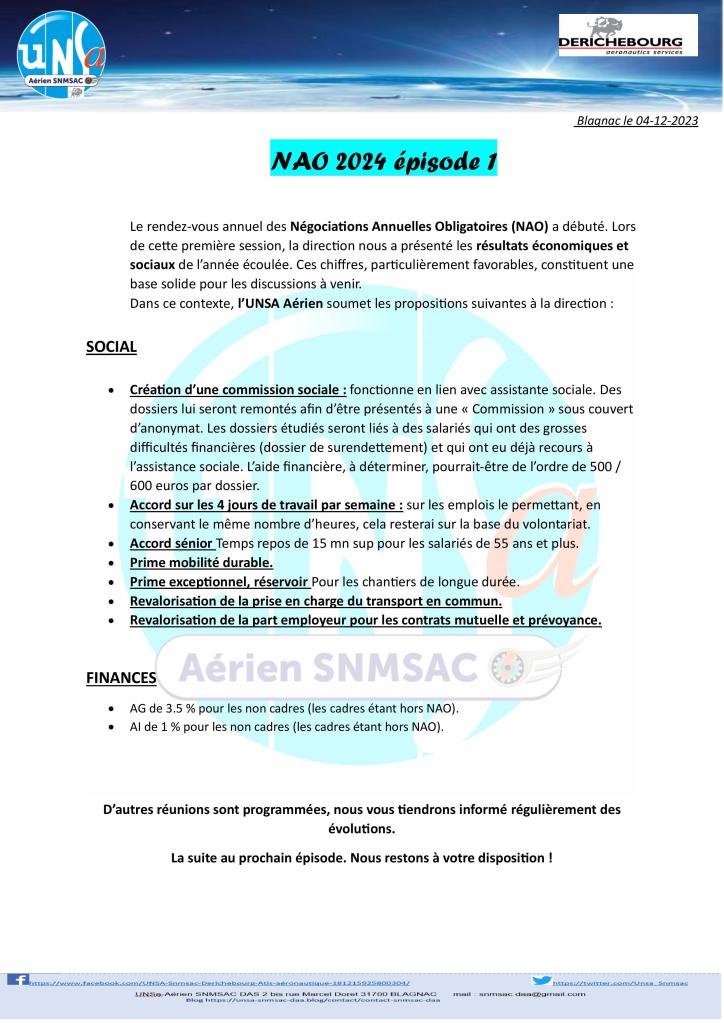 notre dernière communication sur les NAO en cours est en ligne dans la rubrique TRACT 2024 ou en cliquant sur le lien ci-dessous: